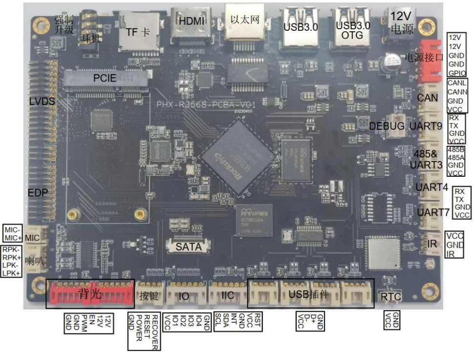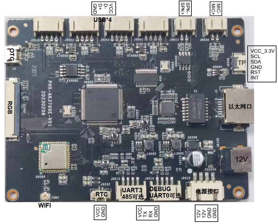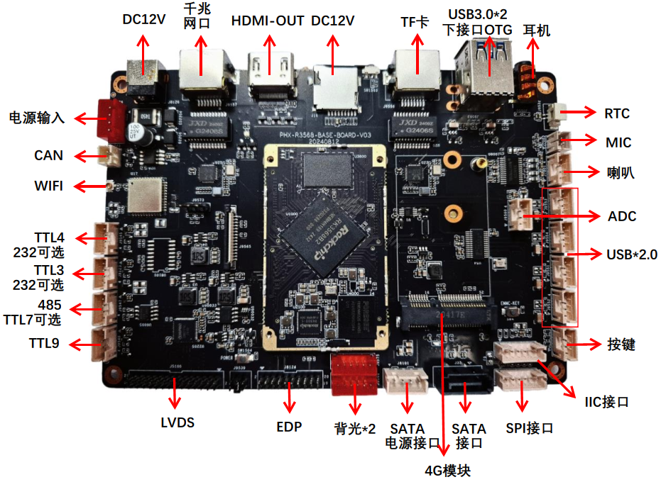 RK3588 采用核心板加底板方式,方便客户快速的进行二次开发,核心板引出全部引脚功能,底板可以设计,提供系统 SDK 源始代码,方便客户自行修改,普遍适用于平板电脑,学习机,人脸别相关,主要产品有匝机通道,刷脸支付,工业机器人,医疗检测设备,车牌识别,广告机、数字标牌、智能自助终端、智能零售终端等相关产品。