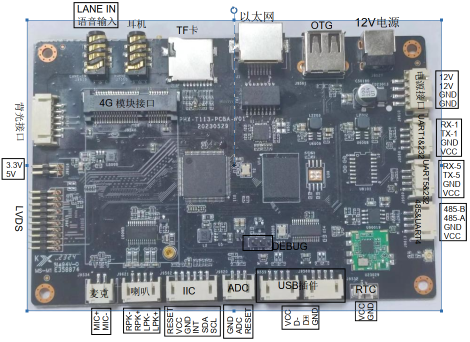 本产品采用Allwinner T113 双核CortexTM-A7 CPU,搭Linux系统,主频 1 GHz。内置 128MB 内存,存储 32GB,最大存储 64GB,支持LVDS、RGB 显示屏接口,接口丰富,支持多款外设扩展,是您在人机交互、工控项目上的最佳选择。
